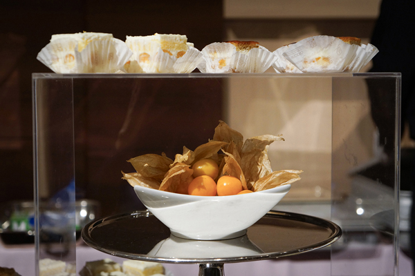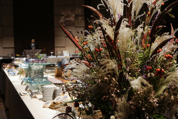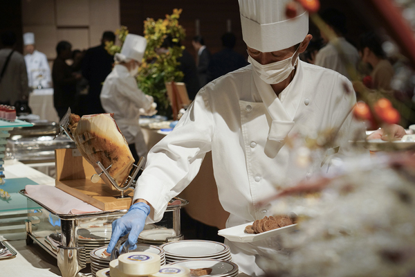 当日は、総料理長をはじめとするホテルシェフたちが、生産農家を訪ねて厳選した新鮮な信州食材を使い、多彩なメニューを披露。ライブキッチンでは、シェフたちによる調理パフォーマンスも行われ、会場は華やかな料理と香りに包まれました。