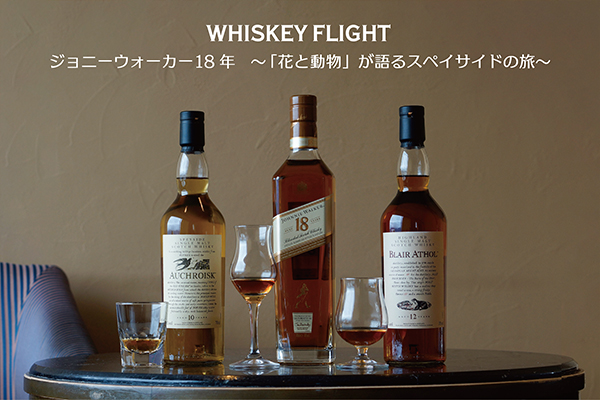 ジョニーウォーカー18年のキーモルト、その贅沢なフレーバーノ中からディアジオ社の「花と動物シリーズ」ブレアアソール 12年とオスロスク10年、そしてジョニーウォーカー18年お楽しみいただけるテイスティングセットをご用意いたしました。