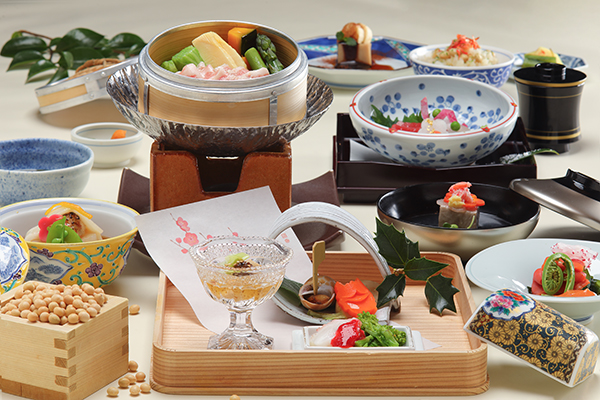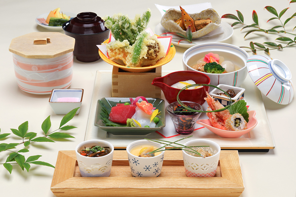 昼・夜それぞれのメニューには季節感と旬の食材を大切にし、料理コンテストで培った盛り付けや演出にも工夫を凝らし五味(甘味・辛味・酸味・渋み・苦み)と五法(生・焼く・煮る・蒸す・揚げる)を取り入れた料理を提供します。
