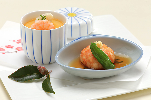 海老出し茶碗蒸しと海老真丈旨餡かけ